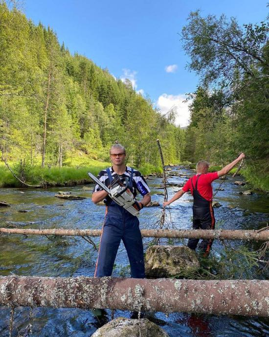 此前哈兰德还晒出自己使用电锯的照片↓