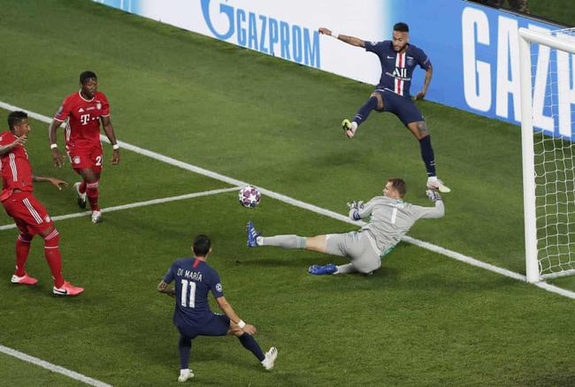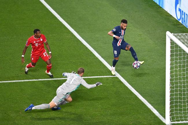 巴黎第18分钟首次制造威胁,姆巴佩左肋直塞禁区,内马尔在门前9米处左脚小角度推射被诺伊尔左脚一挡,内马尔底线回传被诺伊尔钩出底线。