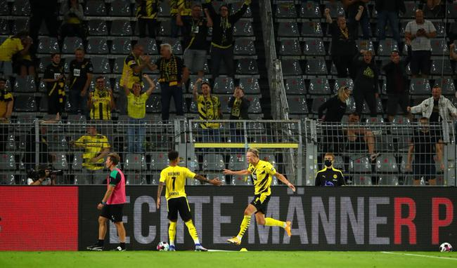 德甲-哈兰德两球 桑乔+17岁新援助攻 多特3-0门兴