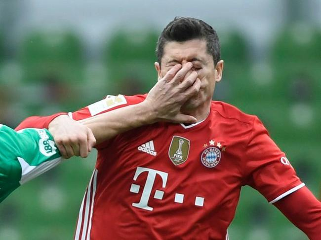 莱万点儿背!开场被打成熊猫眼 大四喜缩水成1球