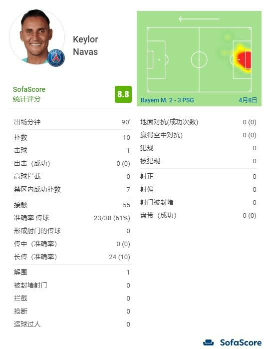 直播吧4月8日讯 巴黎在欧冠八强战首回合3-2客胜拜仁,门将纳瓦斯的高接低挡功不可没。