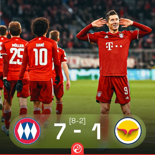 欧冠1/8决赛第二回合,拜仁主场7比1大胜萨尔斯堡,总比分8比2晋级。比赛中上演帽子戏法的莱万刷新了一系列数据。