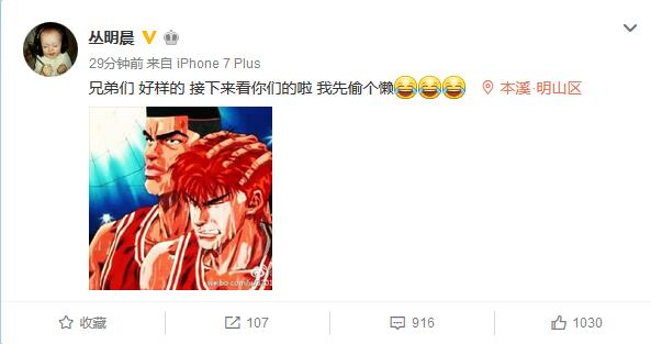 丛明晨赛季报销:我先偷个懒 兄弟们好样的