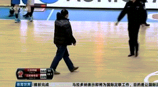 最令人惊讶的一幕出现在距离比赛还剩下8.1秒的时候,场边有个人突然冲进场地内,径直走到裁判身前,要抢夺裁判手中的篮球。裁判把球放置身后没有给他抢到,随后安保人员马上过来将他带出场地。