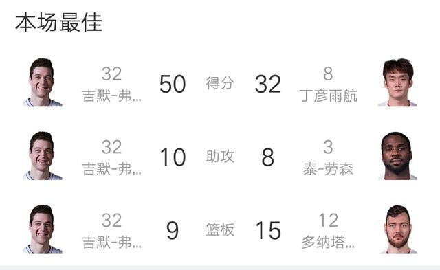 最后看到腾讯直播下方给出的双方本场最佳的数据统计,弗雷戴特包办上海队得分、篮板、助攻各项数据,而山东得分除了小丁之外,篮板、助攻也都被外援霸占