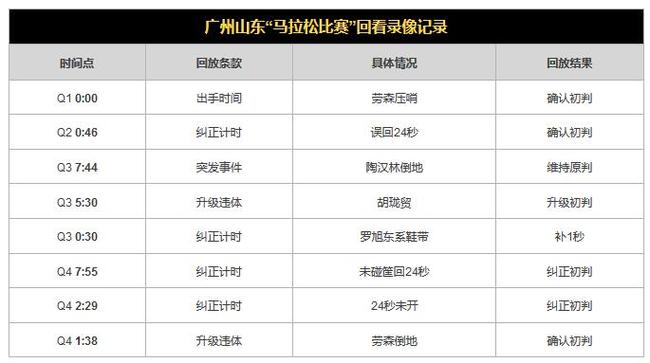 赛后,有些文章写“多次回看录像”、“看了十几次录像”,这都不严谨,实际上总共8次。除了犯规多、罚球多之外,这也是造成比赛时间过长的重要原因。