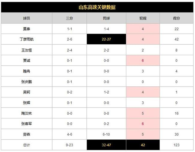 这就是为什么,丁彦雨航下半场仍然有16次罚球,弗格12次罚球;山东队下半场22次罚球,广州队27次。犯规次数有增无减,下半场山东队22次犯规,广州队17次。