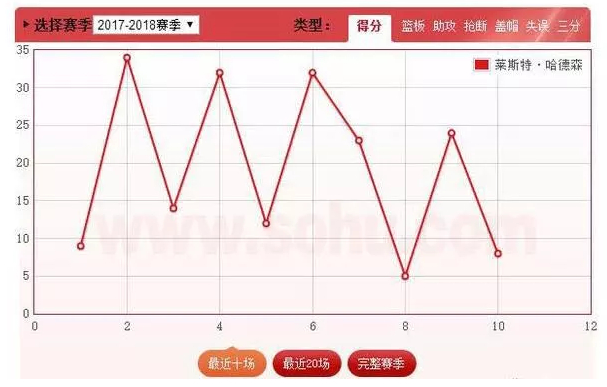 到底有多起伏?如果把哈德森的得分情况做成一个图表,结果是这样的:
