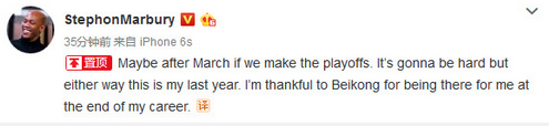 北京时间2月2日,根据美国媒体的报道,北控外援斯蒂芬-马布里宣布将于2月11日正式退役。今日马布里在微博发文也证实了这一点,不过马布里依然表示北控如果进季后赛有可能会推迟退役。