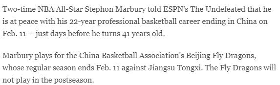 据美媒报道,马布里将在2月11日结束自己的职业生涯。