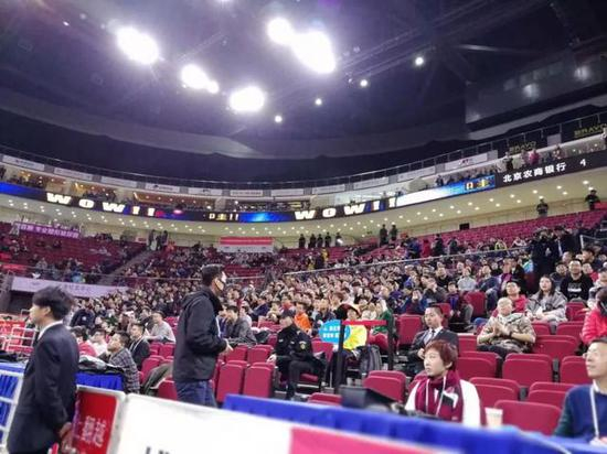 不过,这场比赛依然有部分球迷专程来告别马布里。在马布里热身时,时不时有球迷呼唤他的名字。几年前,北京总决赛,一票难求,整个五棵松球场,马布里MVP的喊声震天响。当时,球场最顶端100多元的球票,被炒到500元以上。这场比赛,开赛前两小时,在球场入口处,原价450元的球票,黄牛出价400出售。本场比赛包厢上层看台就未售票。尽管这样,距离开赛还有28分钟时,球馆内只有两成左右球迷在场。比赛开始时,也只有6成左右球迷到场。