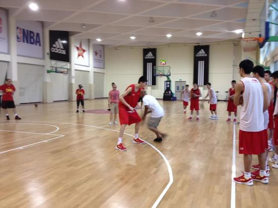 当时,我和老马就坐在场边,他瞪大了眼睛看着训练场上发生的一切,眼睛眨都不眨一下。训练到一半,马布里叫了个停,自己走上去,开始给赵继伟和周琦讲挡拆的细节。
