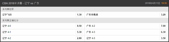 北京时间3月31日,辽宁在主场101-95战胜广东,大比分2-0领先对手。另外一场半决赛山东顽强地拿下一个客场,将总比分改写为1-1。博彩公司开出了最新的夺冠赔率,辽宁队以1赔2的绝对优势位列第一,山东紧随其后,先前排在第一的广厦则仅1赔5.8,不被看好。