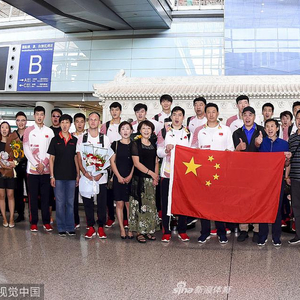 早晨8点22分,中国男篮乘坐的国航CA978次航班落地,男篮的小伙子们相继出现在航站楼。中国篮协副主席兼秘书长白喜林携工作人员到机场迎接,苦苦等候几个小时的球迷更是拉出了写有“祝贺中国男篮亚运会凯旋”“男篮亚洲最强”字样的横幅。