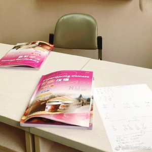 斯科拉写道:“First Mandarin class(第一堂普通话课)。 好的,六六六。”