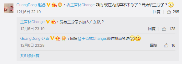 赵睿留言:“咋的,现在内线容不下你了?开始玩三分了?”