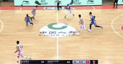 第二节还剩5分10秒,劳森策动进攻,张庆鹏跟进并埋伏在左侧45度角,接到劳森传球后,张庆鹏根本不做多余动作,直接在三分线外干拔出手,球在空中划出一道美妙的弧线,应声入网!