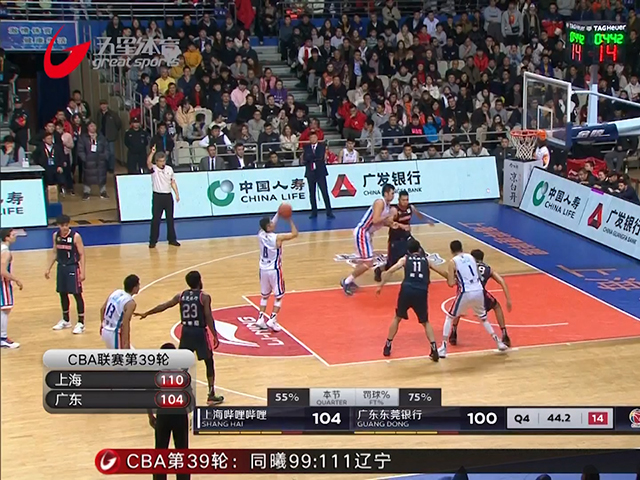 末节,上海发力,球队多点开花打出一波9-3后将比分拉开至91-83。面对上海的严密防守,广东追分有些艰难,阿联在与斯科拉争球中被吹违体,四节打了一半上海领先4分。后半段上海继续发力,状态爆棚的弗雷戴特三分再中后将差距拉开到7分。广东这边也是竭力展开追分,上海失误一度增多,阿联、周鹏合力砍下7分,球队打出一波6-0在四节还剩52秒将分差缩小到3分。刘炜、弗雷戴特通过罚球拿下5分,还剩37秒上海将分差拉开到8分。随着时间所剩无几,胜负失去悬念,最终上海以110-104战胜广东。