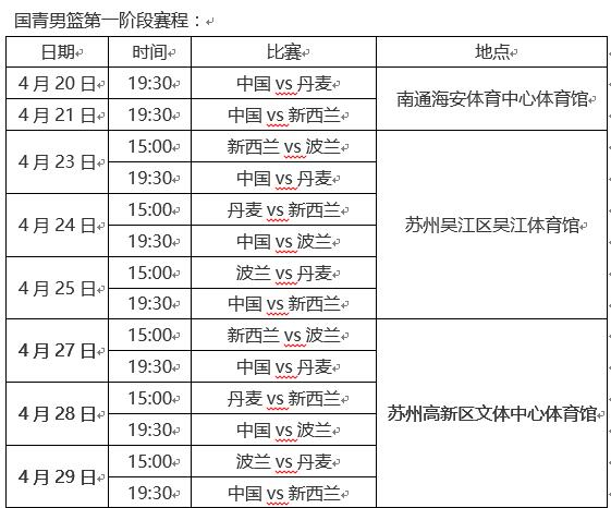 国青男篮第一阶段系列赛赛程公布