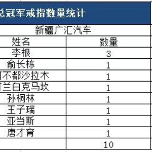 在新疆广汇汽车阵中,有8名球员都拥有至少1枚总冠军戒指,其中李根总冠军戒指数量最多,拥有3枚总冠军戒指。李根的3枚总冠军戒指分别来自与其效力于北京首钢的2013-2014赛季、2014-2015赛季和效力于现球队新疆广汇汽车的2016-2017赛季。
