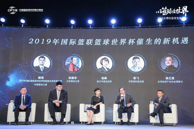 2019年国际篮联篮球世界杯组委会常务副主席、中国篮协主席姚明,北京篮协主席孙国华、盈方中国总经理赵峰,华熙国际副总裁靳飞,台湾运动产业协会理事长徐正贤,从产业升级、经济水平、商业开发以及文化传播等领域出发,分享篮球世界杯为中国篮球产业发展所带来的利好,同时围绕版权开发、办赛水平、媒介管理等不同角度,探讨我国篮球运动向世界高水平赛事学习、借鉴的经验心得。