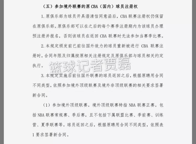 关于去海外效力的CBA球员回归时的身份界定,这份规定中分为了两种情况,一种是去顶级联赛NBA效力,另一种是去非顶级联赛(NBA正赛之外的比赛)效力。