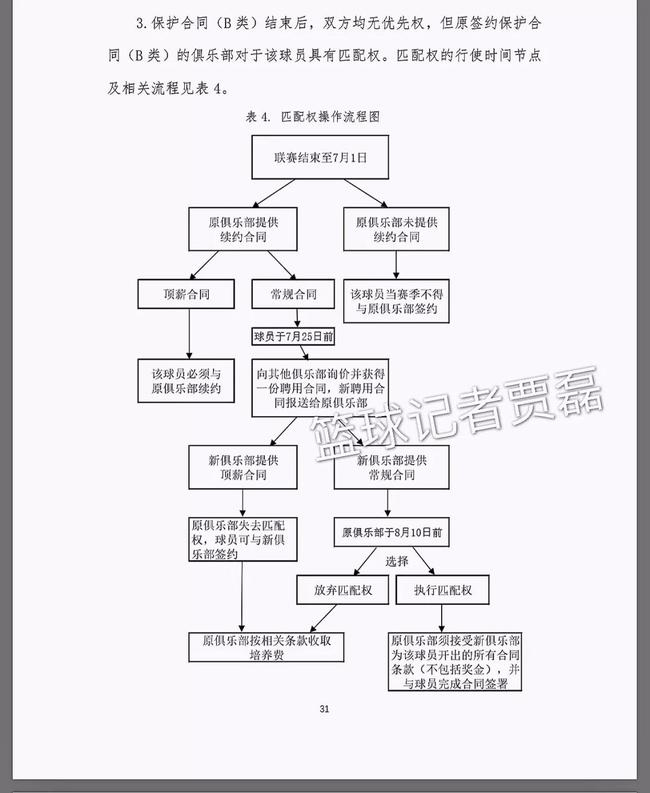 简单来说,在去年的转会管理规定中,如果一名球员与球队的B类保护合同到期之后,球队可以选择用顶薪条款(在球队中排名前三的年薪合同)留下球员,但顶薪条款的使用每队仅限三名球员。球队在不能使用顶薪条款的情况下只能允许球员转会,并收取培养费。不过在新的规定中,球队即便不能使用顶薪条款,也可以提供一份C类常规合同,并拥有对其他俱乐部报价的匹配权,这个流程原文图示中的标明很清晰。