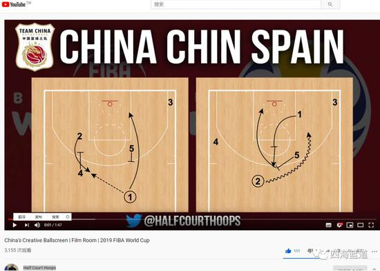 第一场比赛,中国队的“spain进攻战术”屡屡得手,打得对手错不及防。就连国外著名战术分析大师‘Half Court Hoops’也介绍了中国队这个战术。(“spain offense这个战术名字就是他起的,16年兴起于西班牙队现在被很多球队纷纷效仿”)