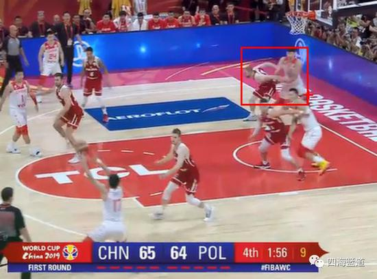 这个赵睿和易建联的高位挡拆,很好的挡拆质量,造成了对手的错位防守,赵睿向后拉球,易建联下顺,准备大打小,但是裁判响哨了,这次吹对方和周琦的争夺当中对方犯规。判罚对中国有利。不谈这个判罚,我们看看当时的位置。