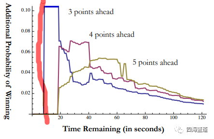 这个图片显示了采用提前犯规的效果,当时的情况下中国队采用提前犯规可以增加将近10%的概率赢球。所以主教练当时安排提前犯规是正确的决定。