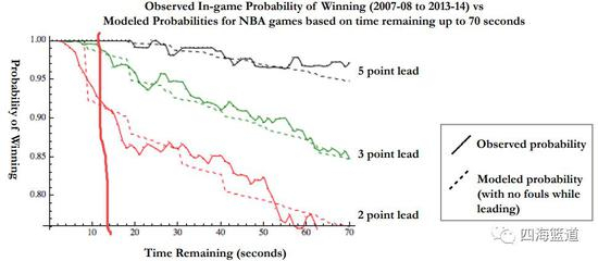 上图是15年科隆体育大会当中的一篇优秀论文,利用模型和实例探讨了比赛最后时刻领先分数和赢球概率。根据当时中国队距离比赛还有13秒领先3分的情况,中国队当时赢球概率在95%以上。
