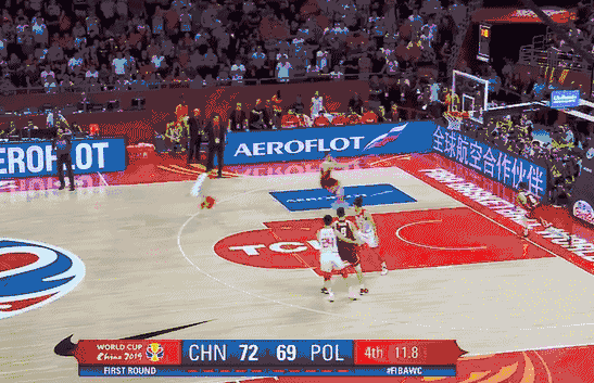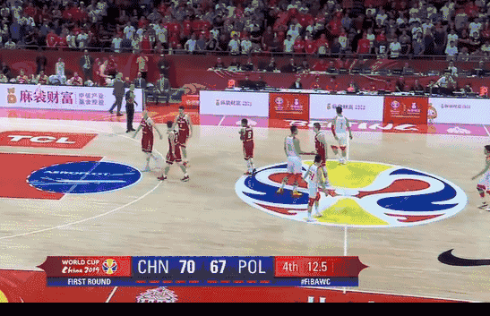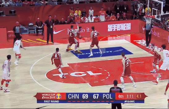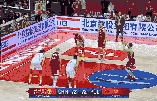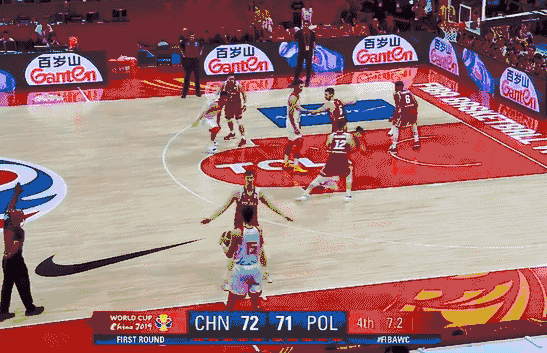 最后7.1秒中国队领先一分,又是一个边线球,中国队还是有很大赢球优势的,但是周琦传了一个击地球,没错,是击地球。这个时候击地球由于反弹后的球速过慢问题是不应该击地的。结果这个致命失误让对手获得两次罚球,还好波兰队两罚一中,让比赛拖入加时。