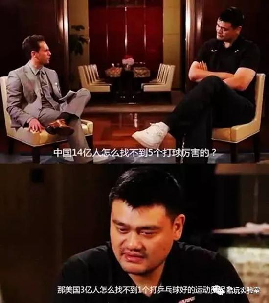 姚明当即反问到,“美国有3亿人,怎么连一个打乒乓球的也找不到”