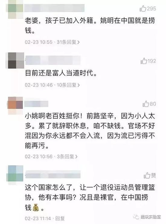 即使是这样,网上仍然一篇质疑,甚至是辱骂。 “这个国家怎么了,让一个退役运动员管理篮协” “中国篮球靠不住姚明”“篮球场上的障碍物,这样的人能出成绩吗?”