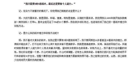 在带领四川队拿到了队史首座CBA总冠军之后,杨学增表示:自己只需要3-5套战术就行了,也不赞同那些10多套甚至20套战术的理念,即使战术跑出来了,打不出来又有什么用?竞技体育不是搞教学。