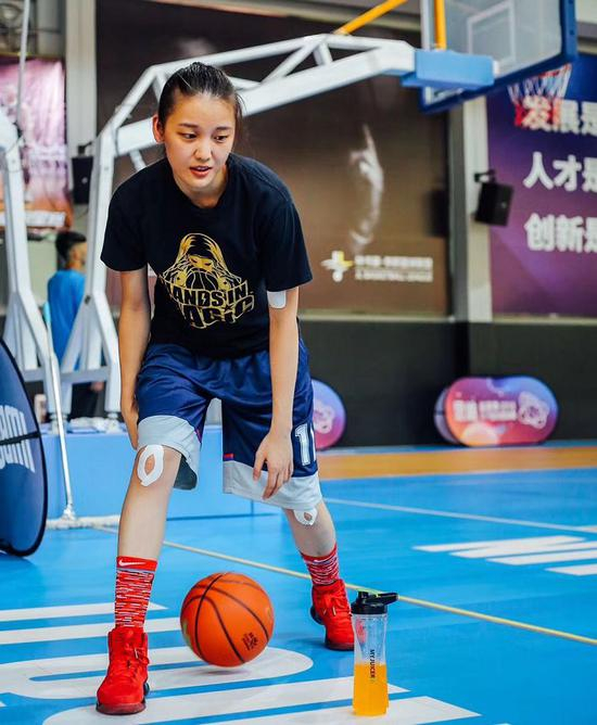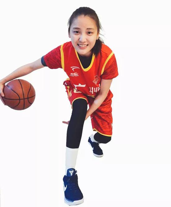 最后之所以选择篮球一方面是得益于她不同常人的身高和臂展