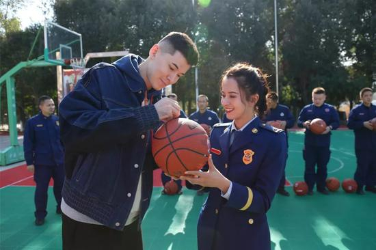 聘任仪式结束后,阿不都沙拉木·阿不都热西提来到乌鲁木齐市消防救援支队特勤二中队,与基层消防指战员进行了互动交流,拍摄了消防公益海报和短视频。