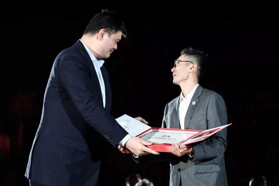 在今天的退役仪式中,中国篮球协会主席、CBA公司董事长姚明来到现场,并为刘炜颁发“中国篮球之队磐石奖”。上海男篮前队友刘鹏、贾孝忠等人也来到现场为刘炜送上祝福。