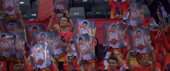 主场球迷高举带有他俩照片的灯牌