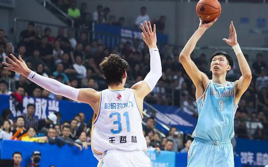 此役,大家的关注点落在周琦和王哲林这组内线对决上。两人不仅是国家队队友,还同属一家经纪公司。首节周琦面对大王防守,灵巧转身后仰跳投命中。