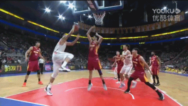 在广东的一个进攻回合中,易建联准备完成单手扣篮,然而浙江中锋赖俊豪横空杀出,给了阿联一记大帽;