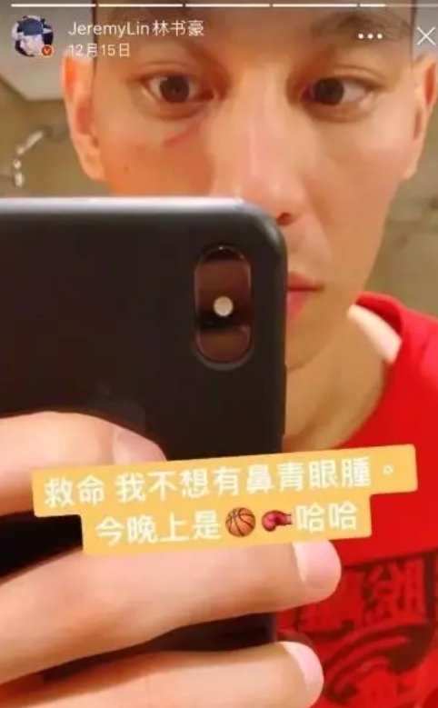 书豪赛后在社交媒体上的一条动态,更值得讨论:他晒出了自己“鼻青眼肿”的照片,并且吐槽CBA的比赛就像打拳击。。。。。。
