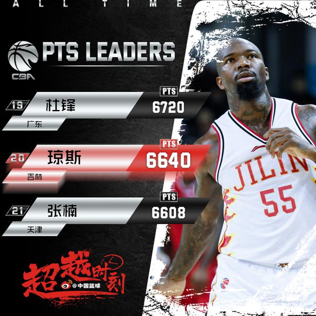 得分方面,琼斯生涯总得分来到6640分,超越天津名宿张楠(6608分),升至CBA总得分榜第20位;