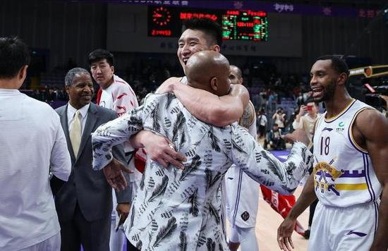 孙悦与马布里庆祝这场难得的胜利。