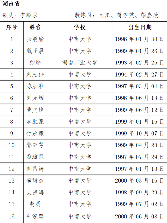 今天再来看看湖南的阵容