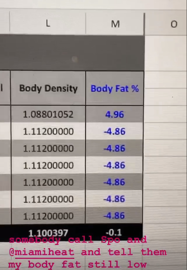 看到自己的体脂率极其低之后,JB还自信的配文道:“来个人帮忙给斯波教练和球队打个电话,跟他们讲我的体脂率依然相当低呢”。