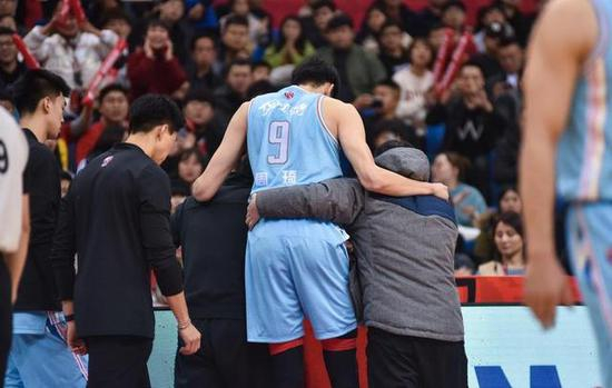 与青岛男篮的比赛,周琦因伤离场。