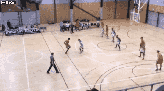 另外还有一些在街球场留下来的动作格鲁佛也带到了这里,他的一些诸如横跨人的传球在这种职业的5V5比赛里简直就是大忌。
