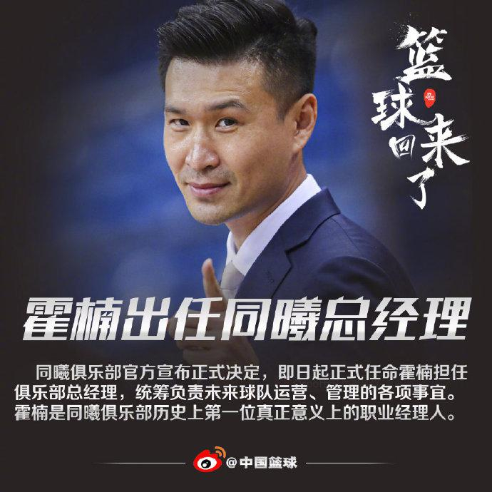 同曦宣布任命霍楠担任俱乐部总经理