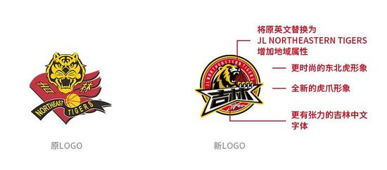 在综合俱乐部的主观意愿和保证新的视觉体系前提下,本次对俱乐部标识的优化升级,围绕更加年轻化、国潮化的视觉体验进行打造。辽宁队新标识,将引入白水黑山的新元素,更具辽宁地域特色;作为同在东北地区的球队,吉林队的新标识革新更多,全新时尚的虎头造型,以及更有张力的虎爪设计,给观者一种虎虎生威的视觉体验。